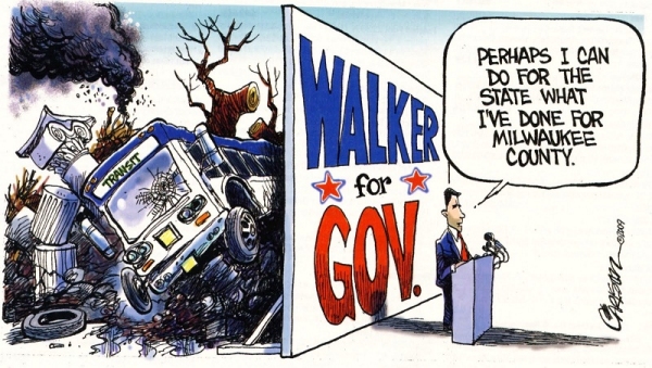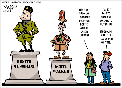 (Feb. 11) Republican Gov. Scott Walker, in Madison Wisconsin, is attempting to make it illegal to belong to a union and collectively bargain for a better life.